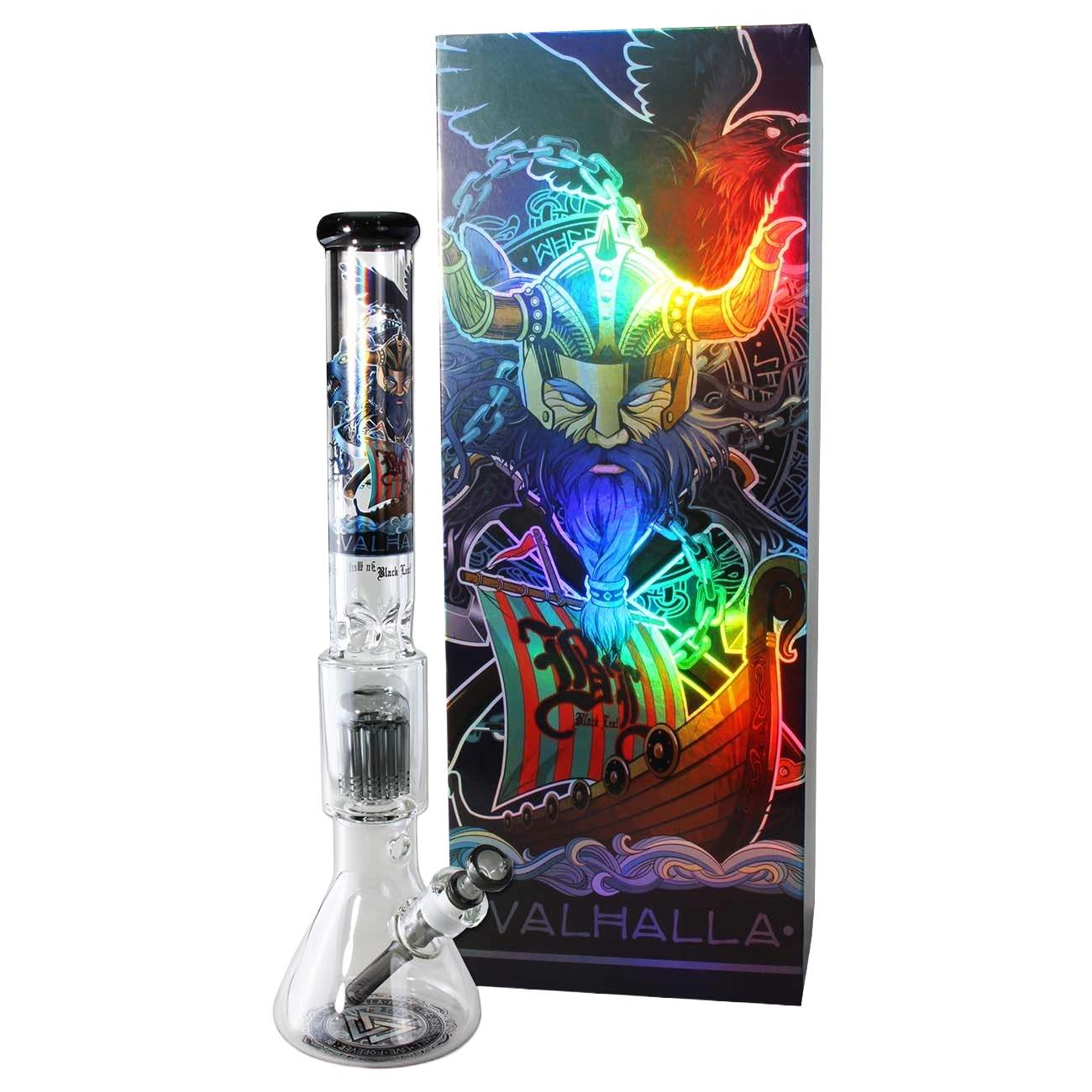 Das aufwendige Metallic-Design zeigt einen mÀchtigen Wikinger, sein Schiff unter Black-Leaf-Fahne sowie den legendÀren Wolf Fenrir. Der bedruckte Bongboden im Runenstil rundet den Look perfekt ab.