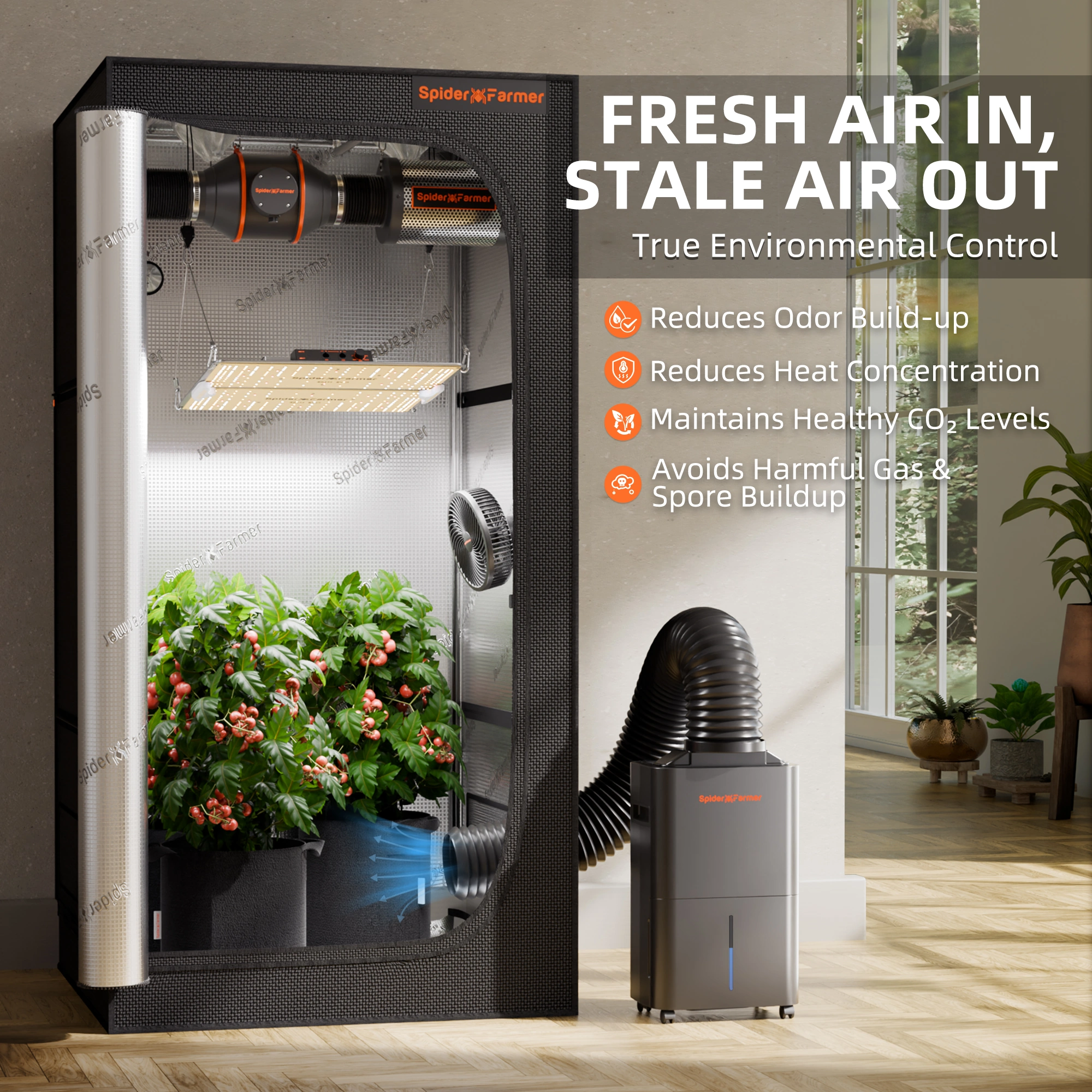 Viele günstige Luftentfeuchter arbeiten mit Halbleitertechnik, die besonders bei niedrigen Temperaturen ineffizient ist. Der Spider Farmer Kompressor-Luftentfeuchter bietet hier entscheidende Vorteile: